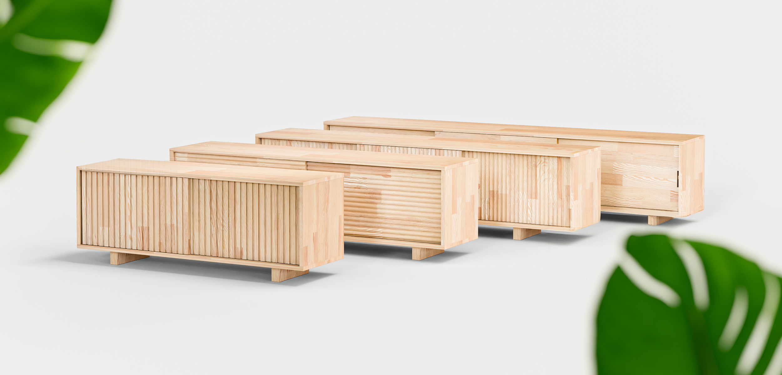 This versatile Scandinavian sideboard is crafted from durable, FSC®-certified pine wood. Its minimalist, textured design features handmade drawers and spacious sliding doors, making it an elegant and eco-friendly storage solution for a living room, dining space, or entryway.